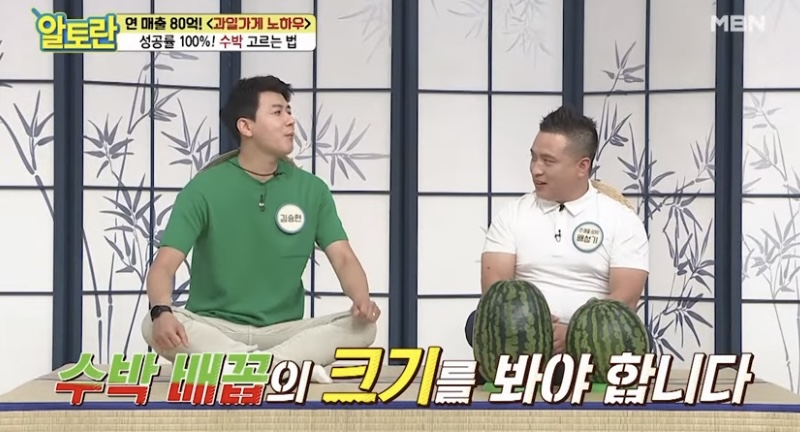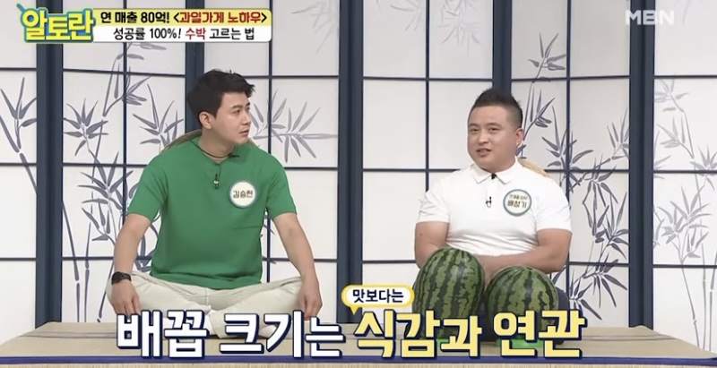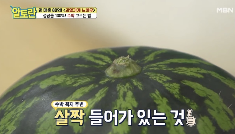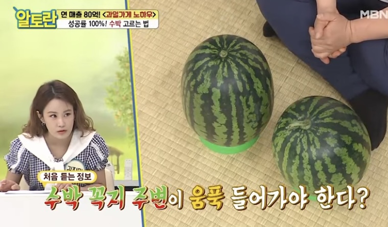 직접 두들겨 보는 것입니다. 맑은 소리가 나는 것이 좋은 수박입니다. 둔탁한 소리가 난다는 것은 속이 비었다는 것을 뜻합니다.