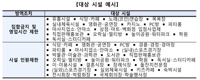 ▴ 집합금지·▴영업시간제한·▴시설인원제한