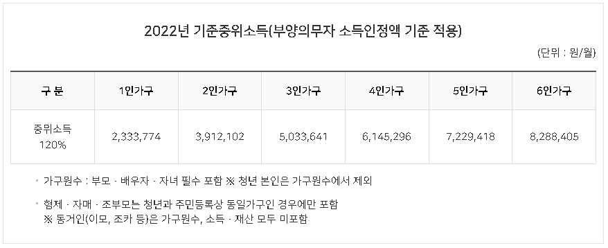 2022년 기준중위소득 (부양의무자 소득인정액 기준 적용)
