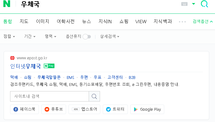 이렇게 보낸 등기는 인터넷에서 간편히 조회를 해보실 수 있습니다. 녹색창에서 '우체국'을 검색하시면 인터넷우체국 사이트가 맨 위에 표시 됩니다. 여기에 들어가세요.