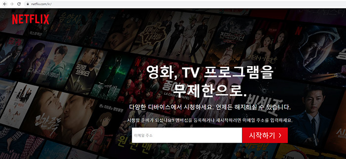 브라우저는 크롬를 이용하고, 구글검색에 넷플릭스로 검색을 통해 넷플릭스 사이트로 접속합니다.