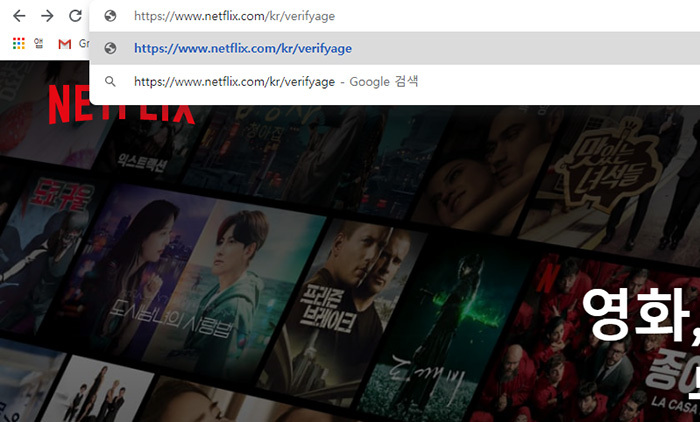그다음 넷플릭스 주소창 뒤에 netflix.com/verifyage를 붙여줍니다