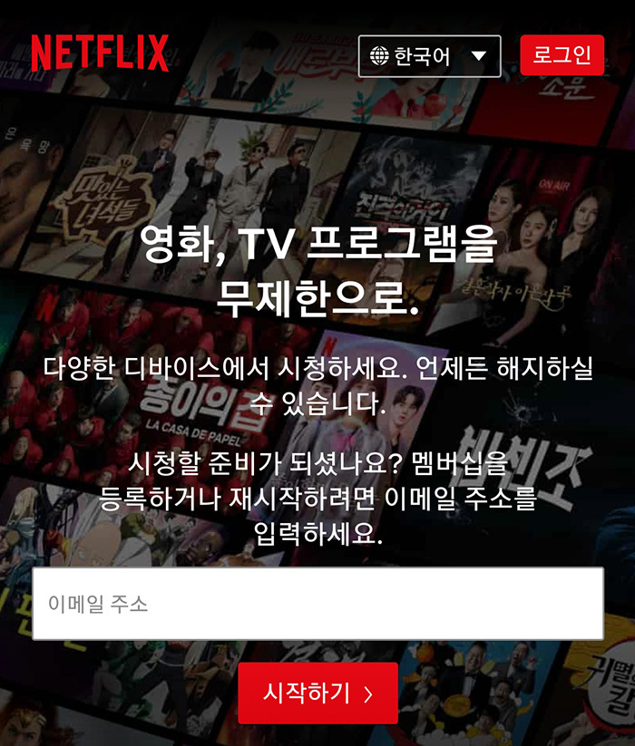 휴대폰에서 넷플릭스 사이트로 로그인 후 접속을 합니다