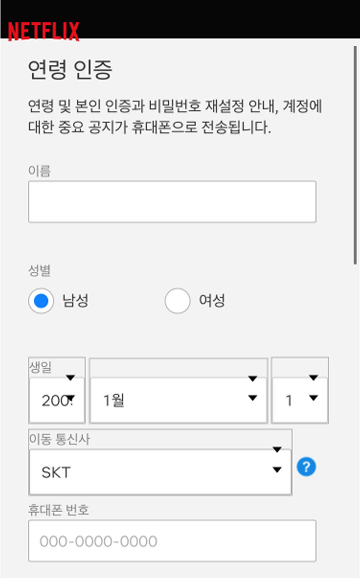 휴대폰 번호로 전송된 6자리를 입력하고 인증받기를 누르면 넷플릭스 연령 인증(성인인증 오류)을 해결할 수 있습니다.