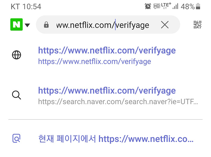 그 후 넷플릭스 주소창 뒤에 netflix.com/verifyage를 붙여줍니다