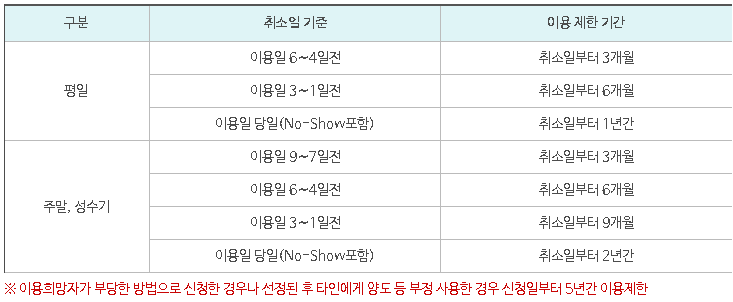 - 평일 : 이용일 7일전까지