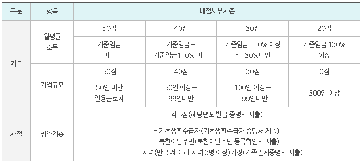 ※ 기업규모 : 법인의 경우 법인등록번호를 기준(본사+지사)으로 판단하며, 개인사업장의 경우 사업주 주민등록번호를 기준으로 판단합니다.