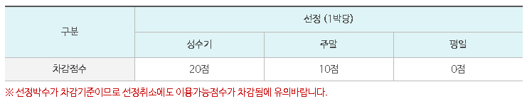 ※ 벌점부과 예외 사유에 의한 취소시에도 선정박수에는 포함됩니다