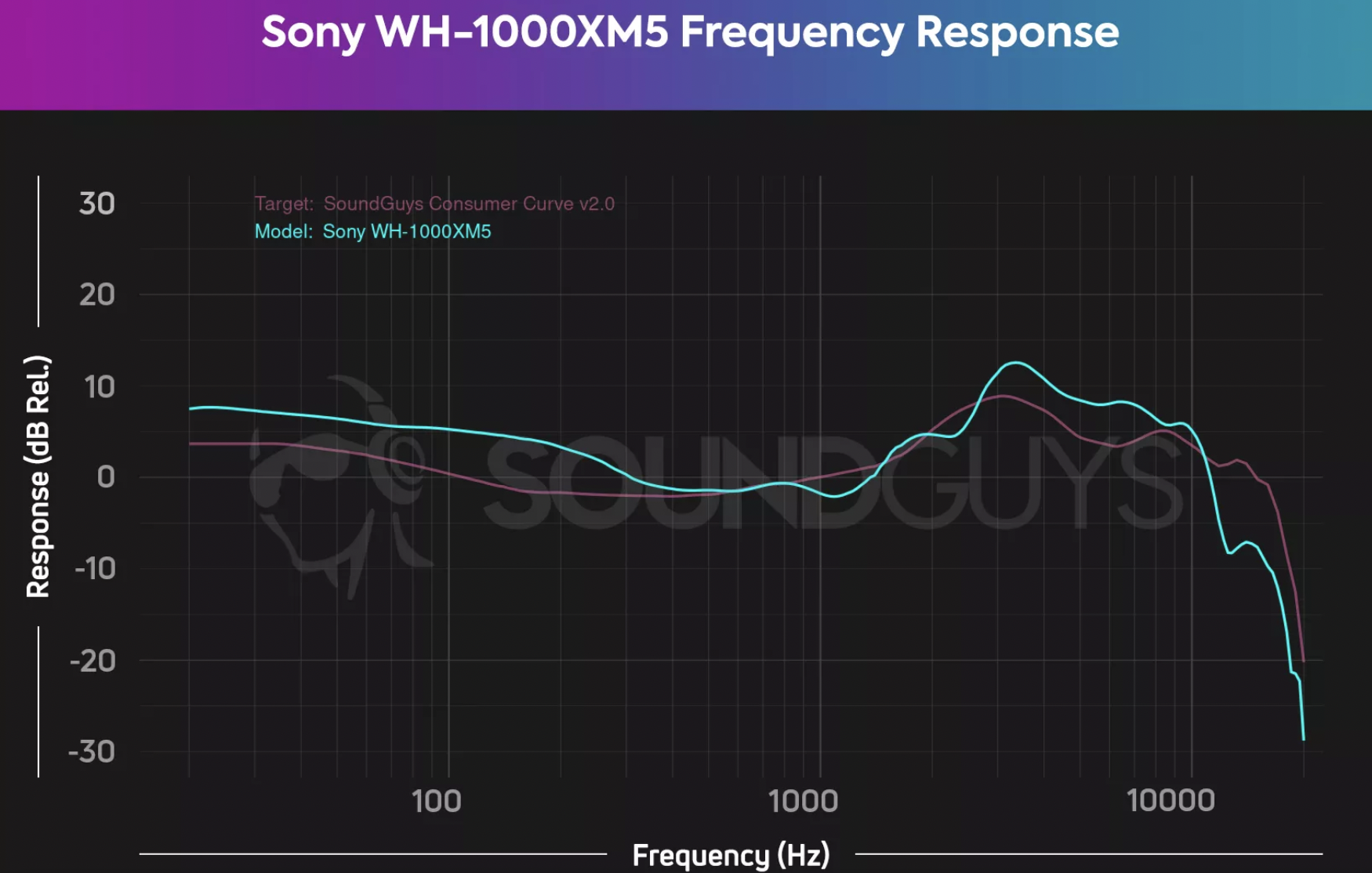 대부분의 소비자 ANC 헤드폰과 마찬가지로 소니 WH-1000XM5는 베이스를 너무 많이 향상시켜 미드레인지의 피해를 확실히 준다. 우리는 이제 이것을 보는 것에 익숙하지만, 더 많은 "고급" 헤드폰과 비교하면, 여러분은 매우 강한 베이스 강조를 바로 알아차릴 수 있을 것이다. 상대적으로 낮은 미드레인지(300Hz에서 약 1050Hz)는 훨씬 더 큰 고저음에 의해 익사하면서 약간 소리가 날 수 있다. 평준화 없이, 여러분은 현악기, 뿔, 목관악기, 그리고 심지어 더 높은 보컬이 여러분이 좋아하는 곡에서 둔화될 수 있다는 것을 발견할지도 모릅니다.