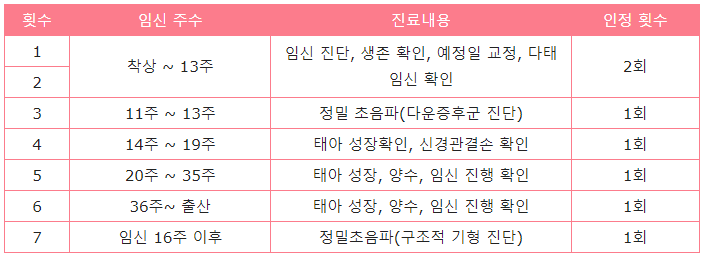 임산부의 검진 중 가장 자주 받아야 하고 비싼 초음파비용의 부담을 덜어주기 위해 마련된 지원정책이지만 병원에 따라 검사비가 상이하므로 이를 초과하는 비용은 임산부가 부담해야 합니다.
