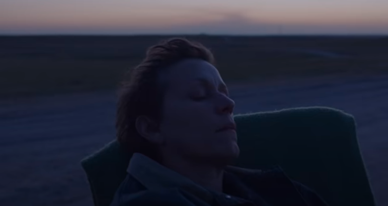 '노매드랜드'의 내용은 살던 도시가 경제적으로 붕괴된 후 남편도 떠나보낸 중년의 여성이 홀로 밴을 타고 노매드, 즉 방랑자의 삶을 떠나는 여정을 그린 영화입니다.
