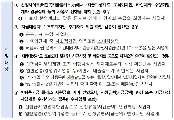 정부는 3월 29일(월) 시작된 신속지급을 통해 미리 선정해 놓은 지원대상에 별도의 서류 청구없이 신청만으로 버팀목자금 플러스를 지원해왔습니다.