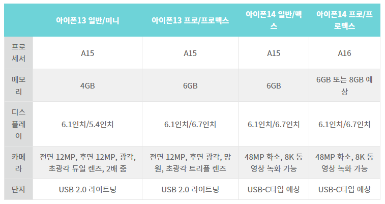 이번 아이폰14 중 프로와 프로맥스에는 8GB 메모리가 탑재된다고 합니다. 그리고 프로세서는 A16 바이오닉 프로세서가 장착됩니다. 특히 주목할 만한 접은 영상 레코딩에 8K가 지원되어 기존 영상 모드를 한 단계 업그레이드 했습니다.