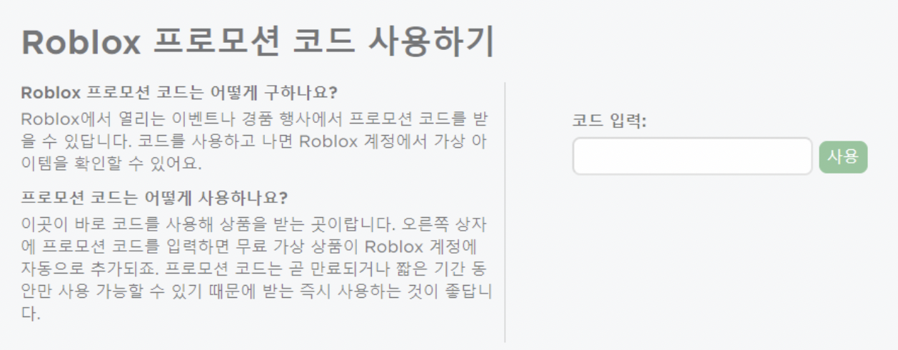아래 페이지에서 알고계신 로블록스 프로모션 코드를 입력하시면 됩니다.