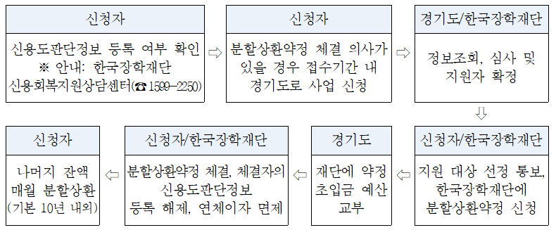 (한국장학재단) 분할상환약정 체결을 통한 한국신용정보원 신용도판단정보 등록 해제 및 연체이자 징수 면제, 그 외 체납자 법적조치 유보