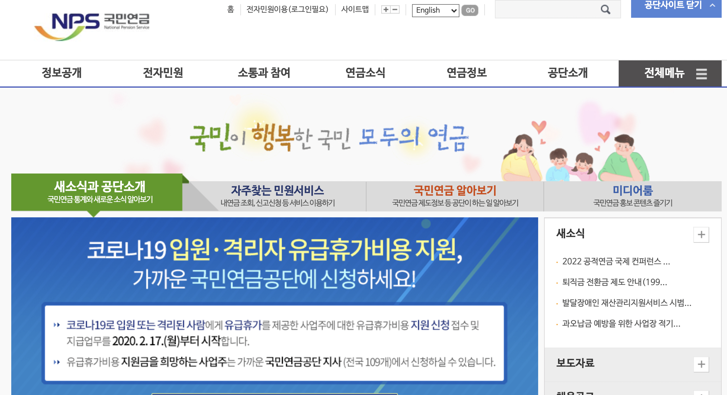 국민연금공단 홈페이지 바로가기