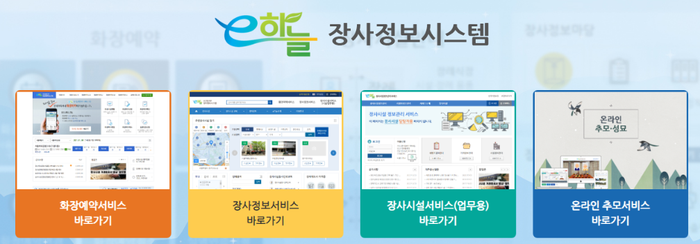 장례문화 전반에 대한 서비스가 제공되어지는 장사정보 시스템인데요. 자치단체 장사시설 운영관리 및 화장예약, 장사행정지원, 온라인 추모서비스도 지원되어진다고 합니다.