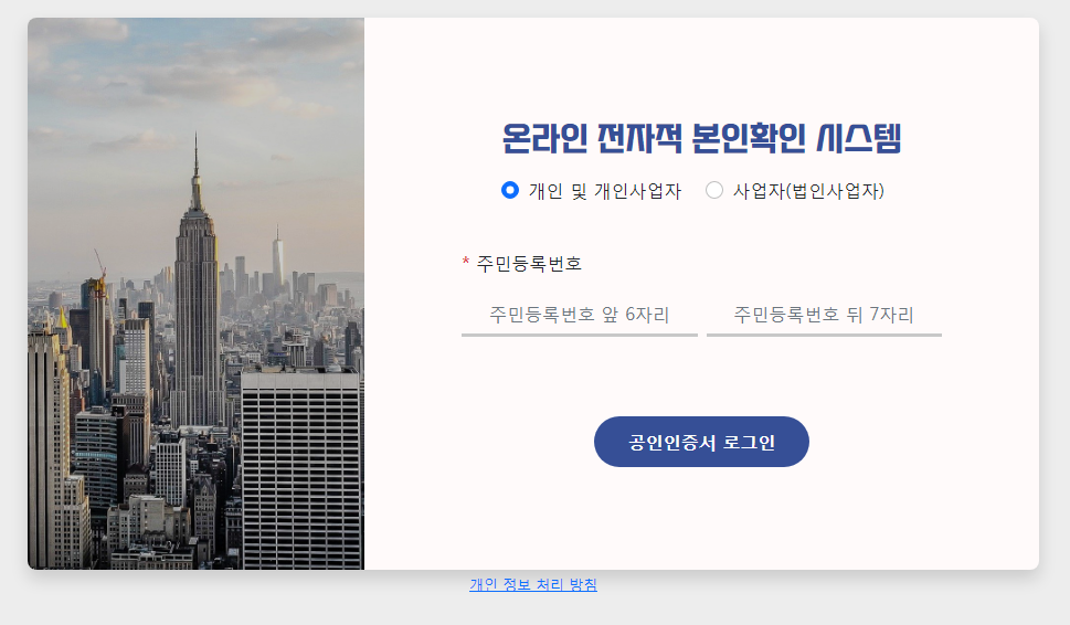 전자적 본인확인 동의를 위하여 온라인 전자적 본인확인 시스템이 제공됩니다. 이용자분들은 인증수단을 통하여 전자적 매체를 통한 본인확인 절차 이용해보시기 바랍니다.