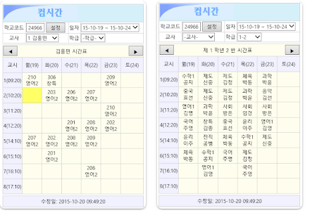 학교에서 컴시간 일과진행 프로그램을 사용하시면 우리학교 교사별, 학급별 시간표를 열람하실 수 있습니다. 모바일 애플리케이션 및 컴시간 알리미 홈페이지로 pc에서 이용을 하실 수 있습니다.