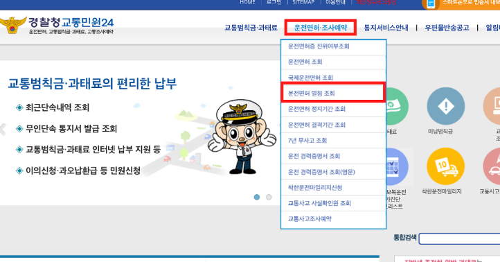경찰청 '교통민원24'홈페이지(www.efine.go.kr)의 운전면허정보조회를 통하여 본인의 벌점 현황을 확인할 수 있습니다.