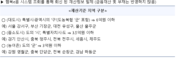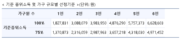 * (기준 중위소득 75%) 7인 5,622,899원, 8인 이상 가구의 경우 1인 증가 시 마다 984,446원씩 증가
