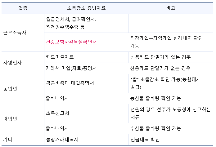 ○ 소득감소 증빙자료 등을 제출한 경우(세대원 포함)