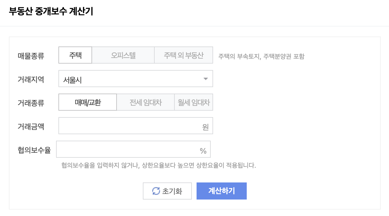 부동산 중개수수료는 네이버를 통해서도 직접 알아볼 수 있습니다. 네이버 중개보수 계산기를 통해 착오 없이 법정 수수료가 얼마인지 계산해 볼 수 있습니다.