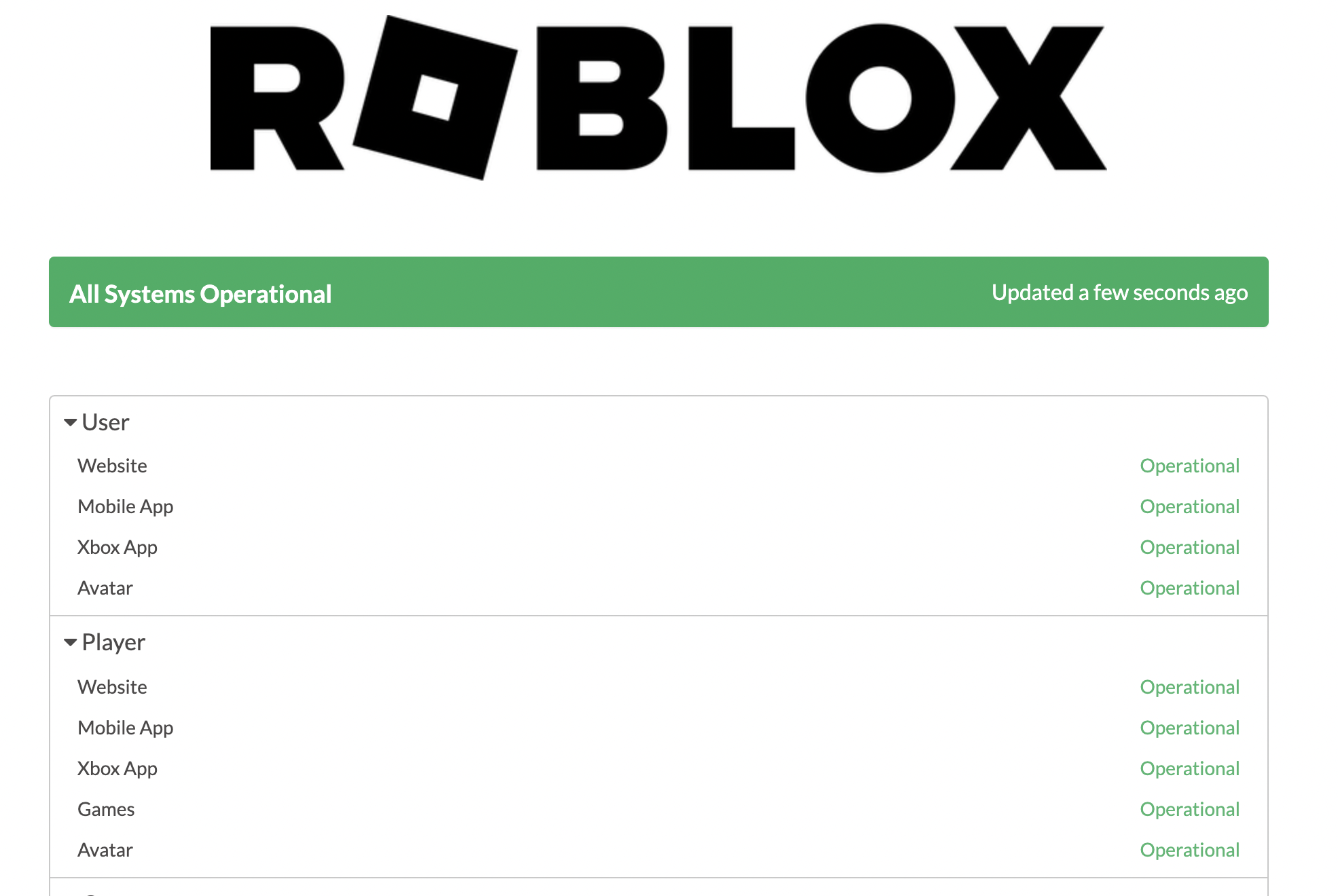 로블록스의 서버 상태가 정상적인지 확인할 수 있는 사이트 입니다. 화면의 우측에 Operational로 표기가 안되어 있는 경우 문제가 있을 수 있습니다.