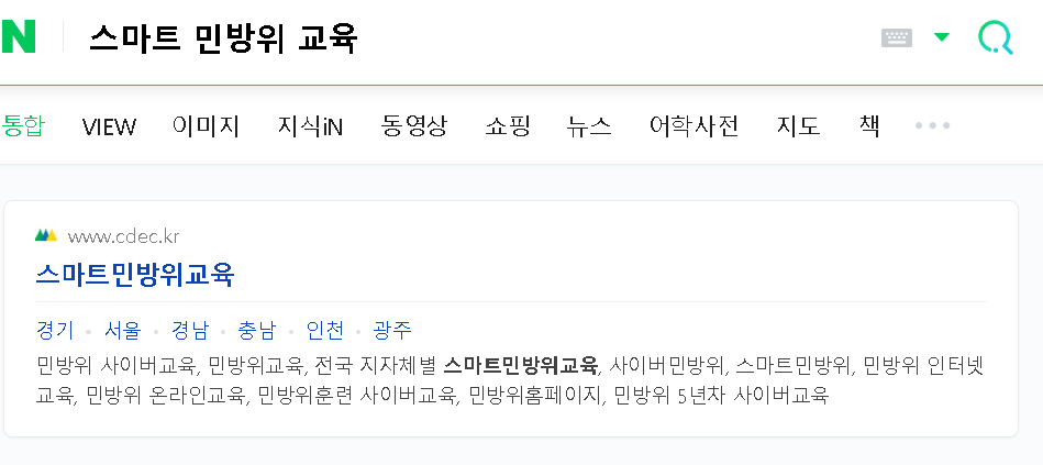 접속 방법은 네이버 녹색창이나 다음과 같은 포털에서 '스마트민방위교육'이라고 검색하시면 접속하실 수 있습니다.