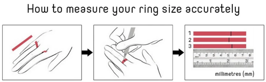 테이프나 포스트잇, 종이를 손가락에 감아서 실재 둘레를 측정하는 것입니다.
