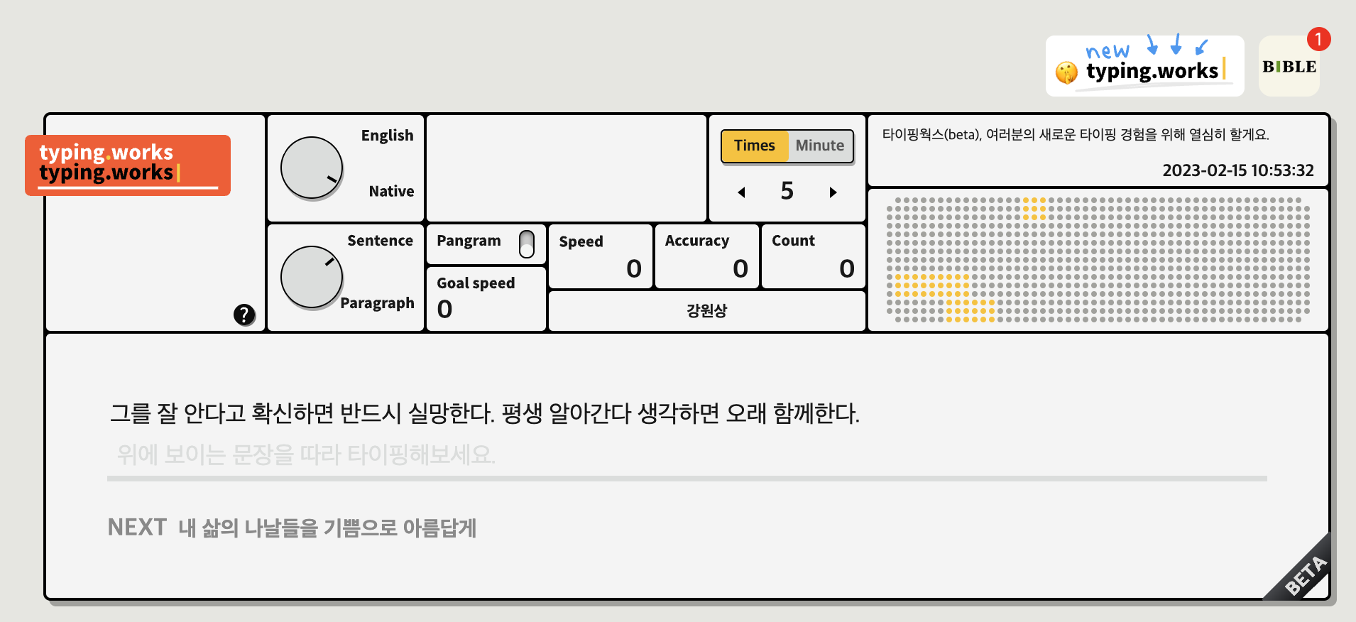 컴퓨터 타이핑 속도를 늘리기 위하여 타자연습을 많이 합니다. 이러한 타자연습의 대명사는 국내에 대표적인것이 한컴타자연습인데요. 그 외에 최근에는 온라인 타자연습 사이트로 타이핑 웍스 (Typing.works)가 있습니다.