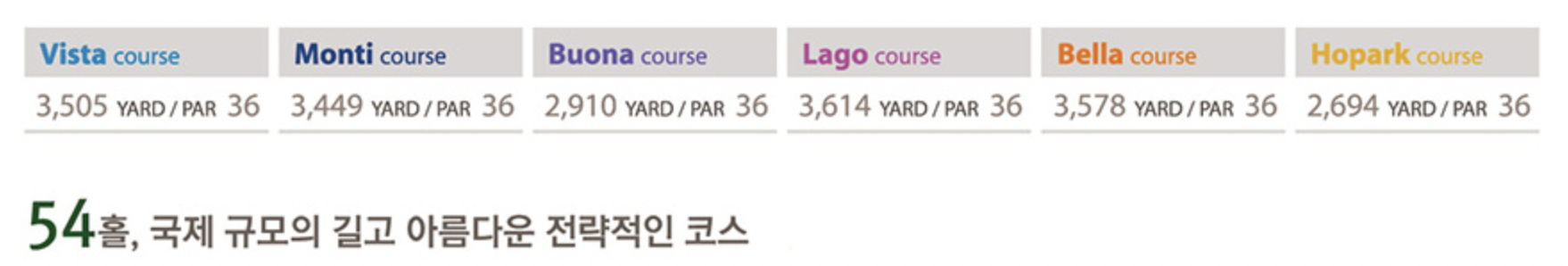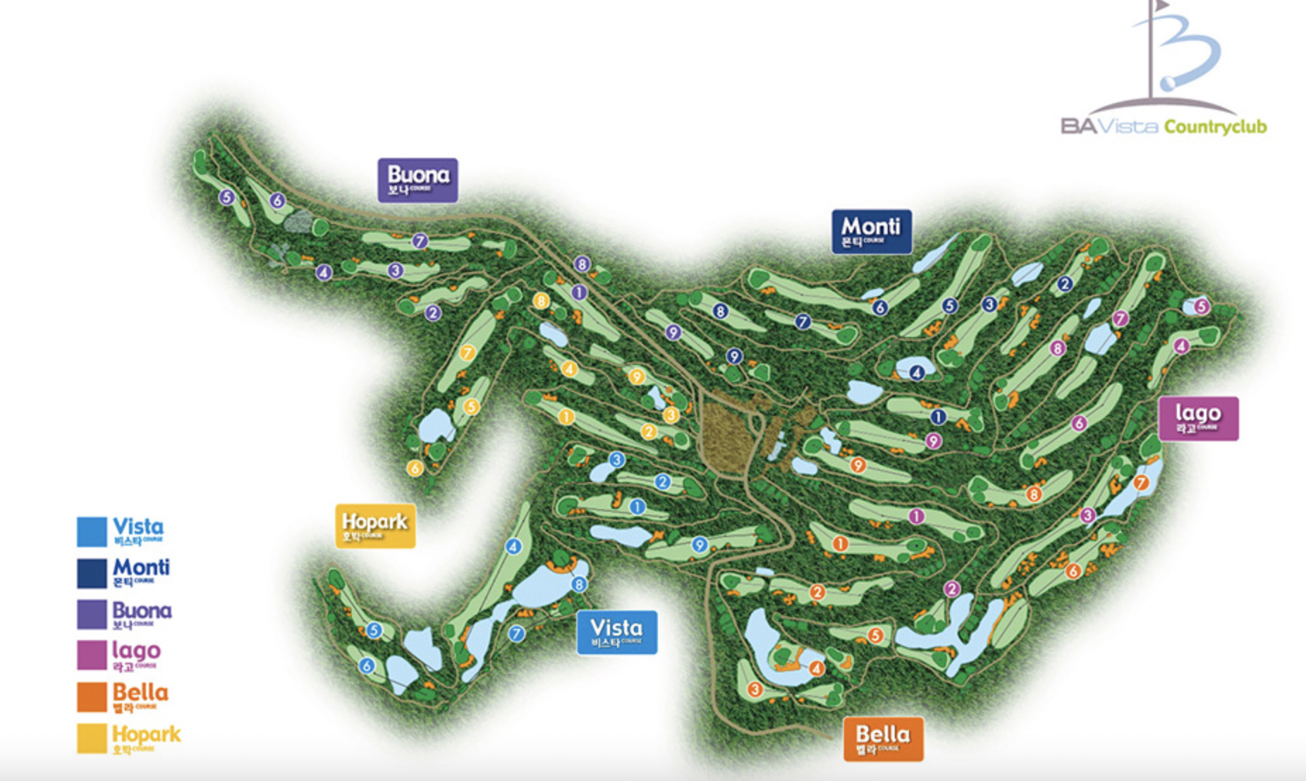 웅장한 대덕산 자락의 아름다운 자연환경에 융화되어 탁트인 전경과 경관을 자랑하는 비에이비스타는 서울에서 어느 길로든 50분 이내의 거리에 위치해 있습니다. 용인지역에 건설된 60여만평의 대지에 펼쳐지는 54홀의 코스는 국제 규모의 아름답고 전략적인 코스로 회원 여러분의 욕구에 충분히 만족할 수 있으리라 생각됩니다.