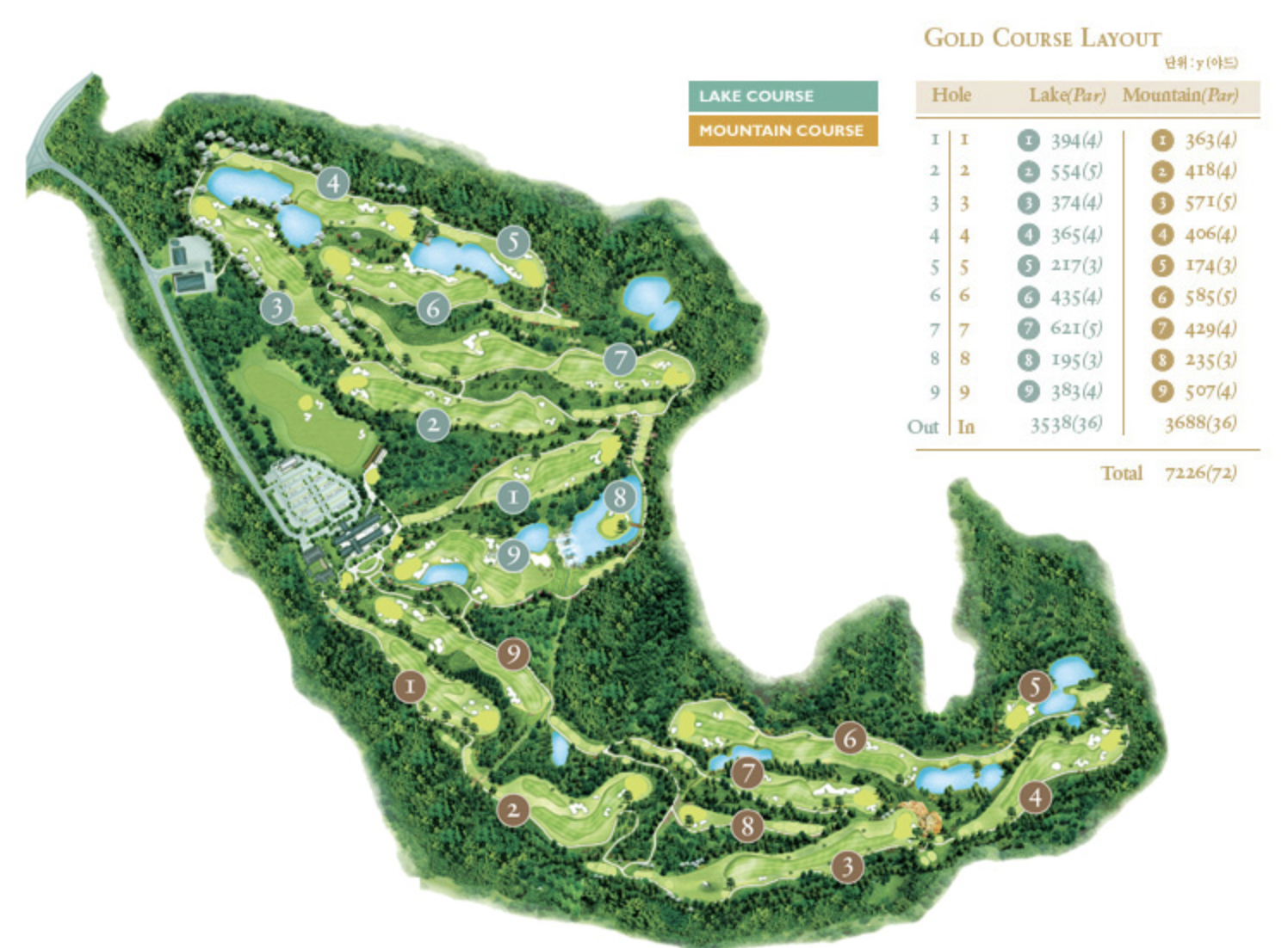 레이크코스는 각 홀마다 사계절을 고루 느낄 수 있는 수목이 정갈한 그린과 어우러져 플레이어를 반기며 기품 있는 자연,