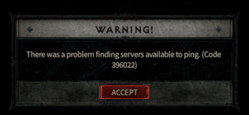 오류 396022는 플레이어가 디아블로 4 오픈 베타 서버에 연결 실패할 때 발생합니다. 이는 일반적으로 대기열이 긴 시간이나 서버 불안정성의 무작위 인스턴스가 발생할 때 발생합니다.