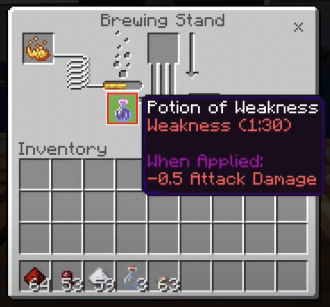 마인크래프트 물약은 장비 마법과는 달리 일시적인 효과가 있습니다. 하지만 몇몇 마인크래프트 물약은 생존 모드와 하드코어 모드에서는 달성하기 어려운 성취를 돕는 강력한 버프와 디버프를 제공합니다. 약화의 물약은 종종 두 가지 이유로 활용되지 않는 소비용품입니다. 지속 시간이 짧고, 소비 시 플레이어에게 디버프가 걸립니다. 하지만 이 물약을 어떻게 양조해야 하는지 알아둬야 합니다. 왜냐하면 이 물약은 창의적인 방식으로 사용될 수 있기 때문입니다.