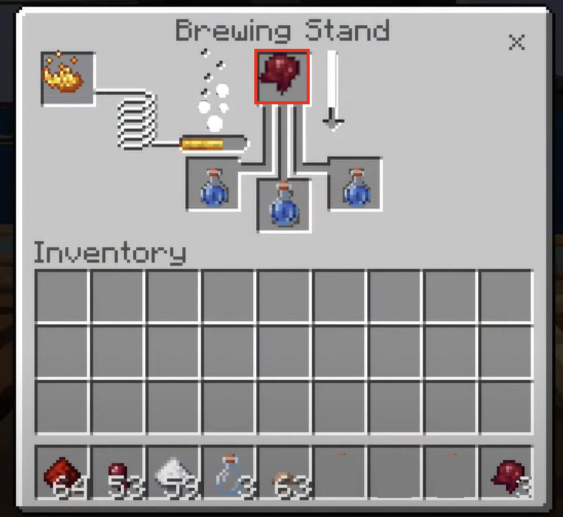 4. 한 개에서 세 개의 발효된 거미 눈을 양조 재료 칸에 넣습니다.