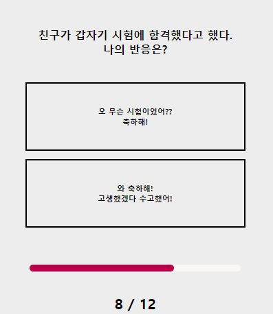 8 친구가 갑자기 시험에 합격했다고 했다 나의 반응은