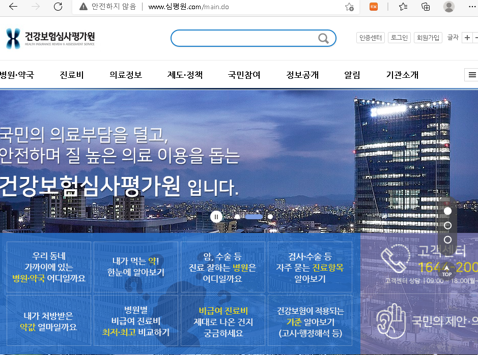 일단 첫번째로 시세를 알아볼 수 있는 곳은 바로 '건강보험심사평가원'입니다. 이 홈페이지에서 변원별 비급여 진료비 최저, 최고 비교하기를 통해서 확인하시면 대략적인 임플란트 가격을 확인, 비교해보실 수 있습니다.