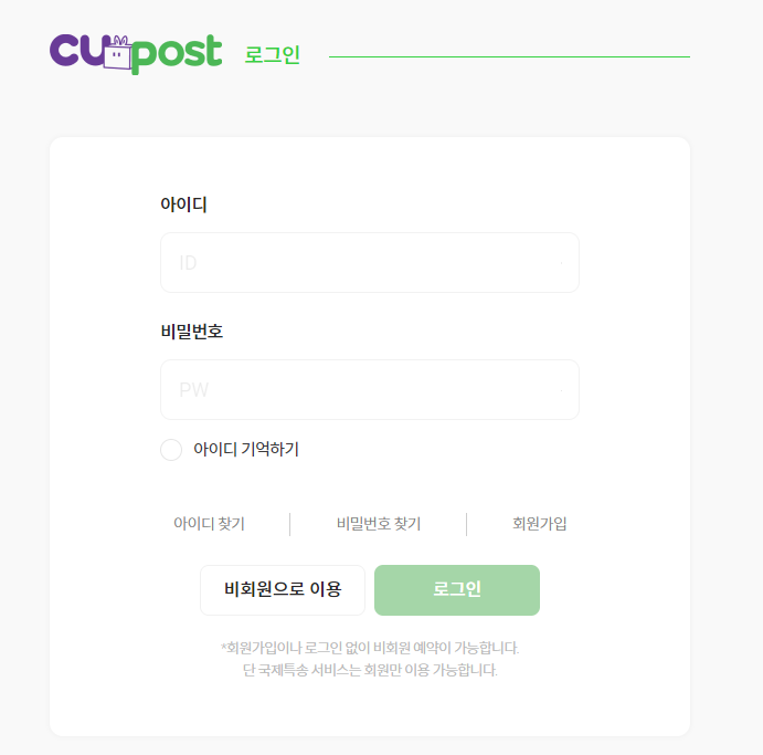 온라인 CU POST 사이트 접속 후 비회원/로그인을 통해서 접수가 가능합니다.