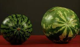 수박에도 암컷과 수컷이 있다는데 혹시 아시나요? 사진의 길쭉한 모양의 수박은 수컷, 작고 둥근 수박은 암컷 수박이라고 합니다. 이 두 수박 중 더 맛있는 수박은 작고 둥근 수박입니다.