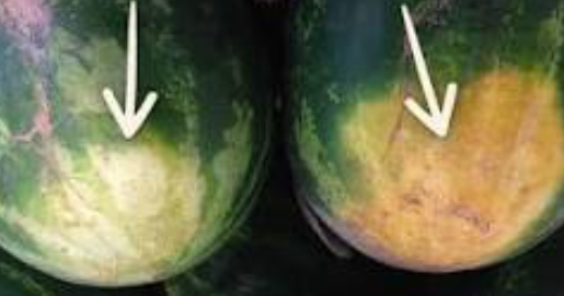 수박 바닥이 하얀색에 가깝고 밝은 색이 있는 반면 노란색을 띄는 수박이 있습니다. 이 두 가지 수박 중 바닥이 노란색의 수박이 잘 익은 수박입니다.