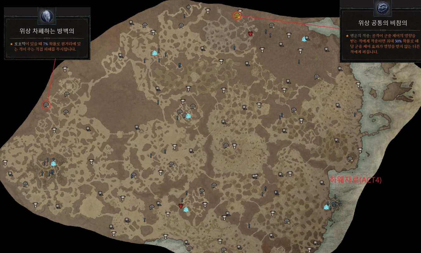 | 메마른평원(ACT3) | 바바 | 철갑 전사 | 철갑피부가 저지 불가와 00%의 피해 감소를 부여합니다. |
