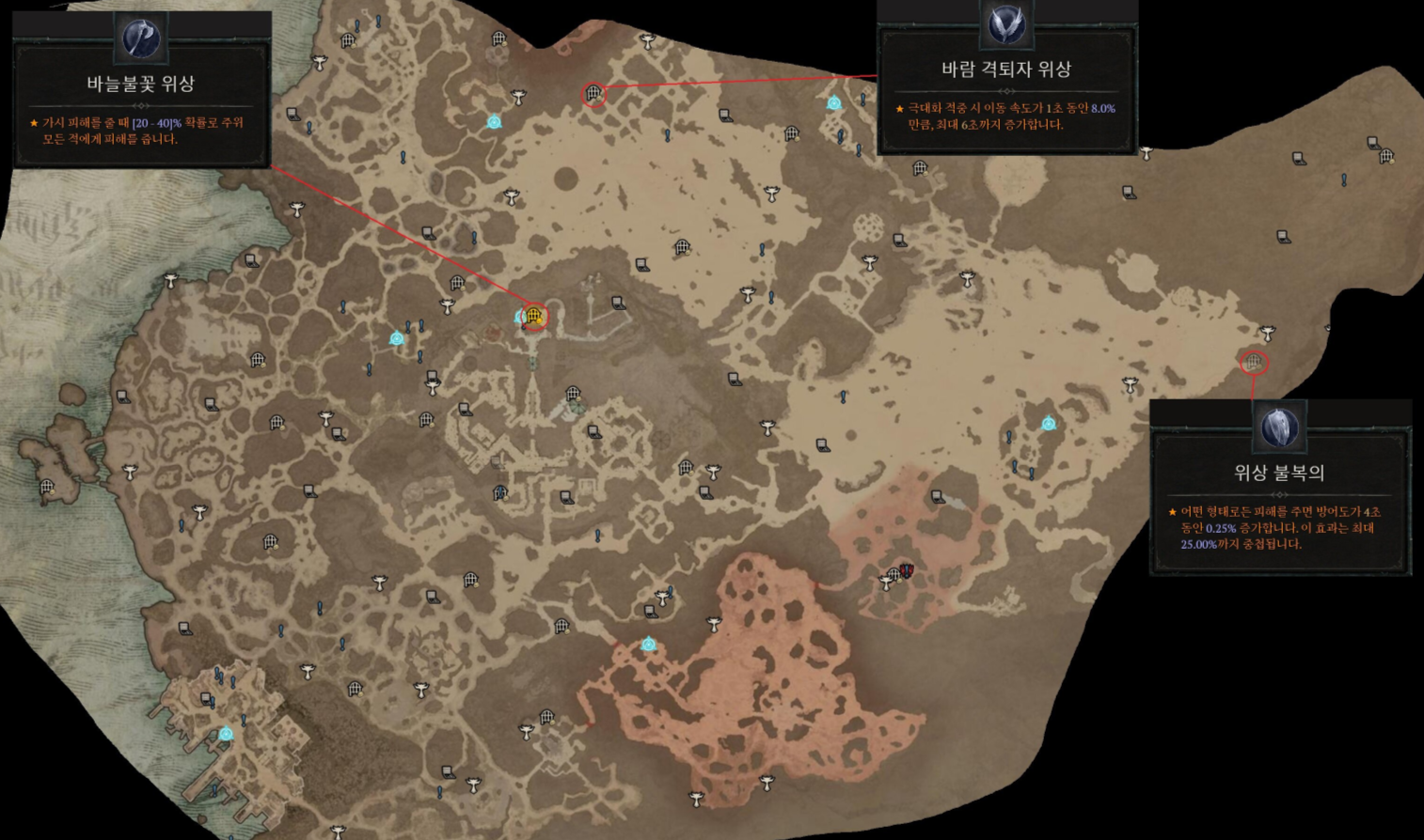 | 메마른평원(ACT3) | 네크 | 효능이 있는 피 | 생명력이 가득 찼을 때 피의 구슬이 정수를 00 부여합니다. |