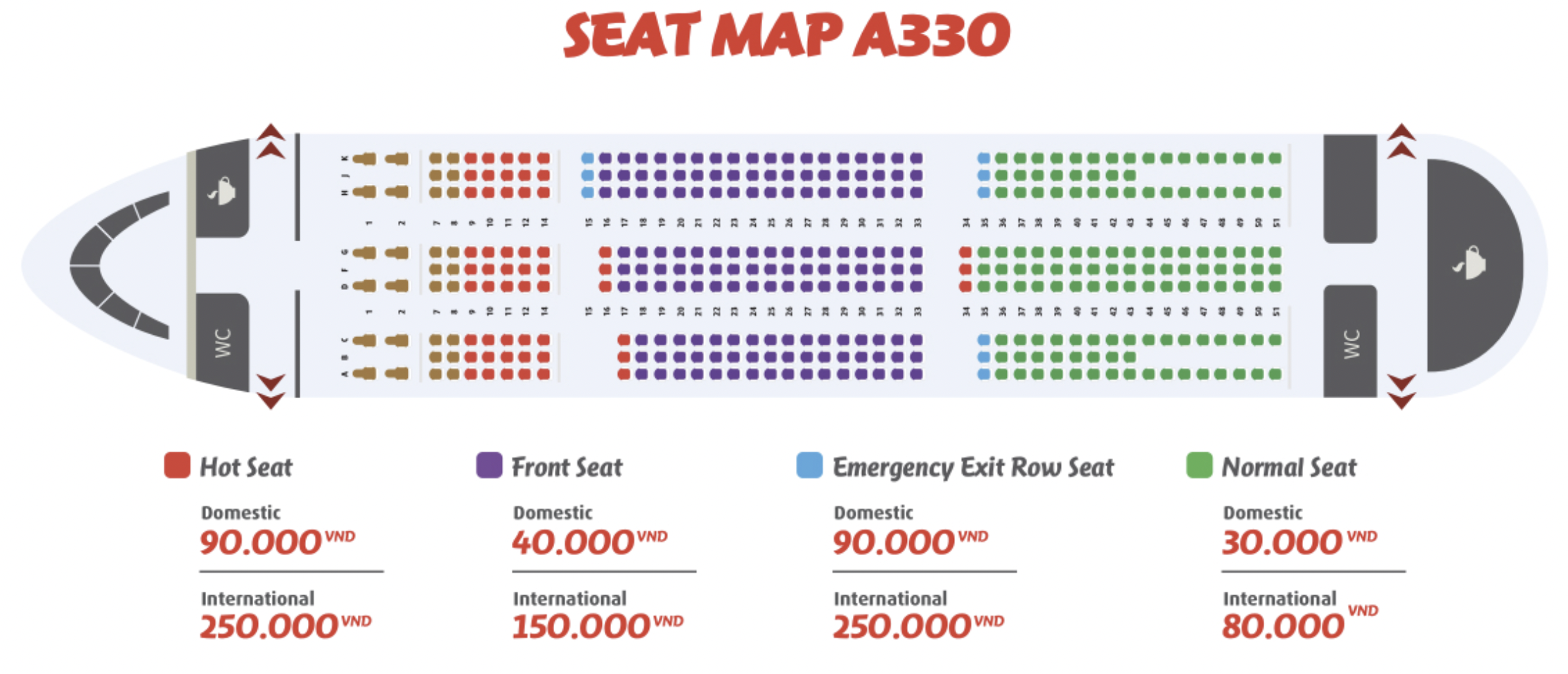 비엣젯 항공의 항공기는 3가지 기종으로 보입니다. A320, A321, A330로 안내에 보여지는데 이 중 A330만 3-3-3 좌석이고 나머지는 3-3 좌석입니다.