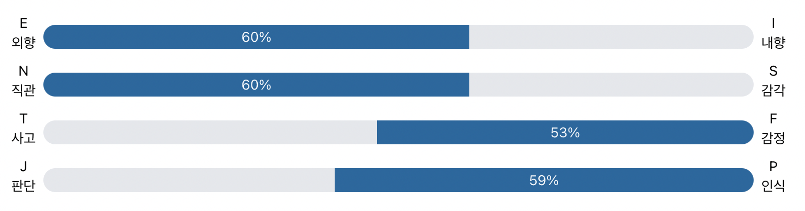 67개의 문항의 답변을 모두 완료하면 아래와 같은 결과가 표시됩니다. 제 결과를 한 번 참고해 보세요.