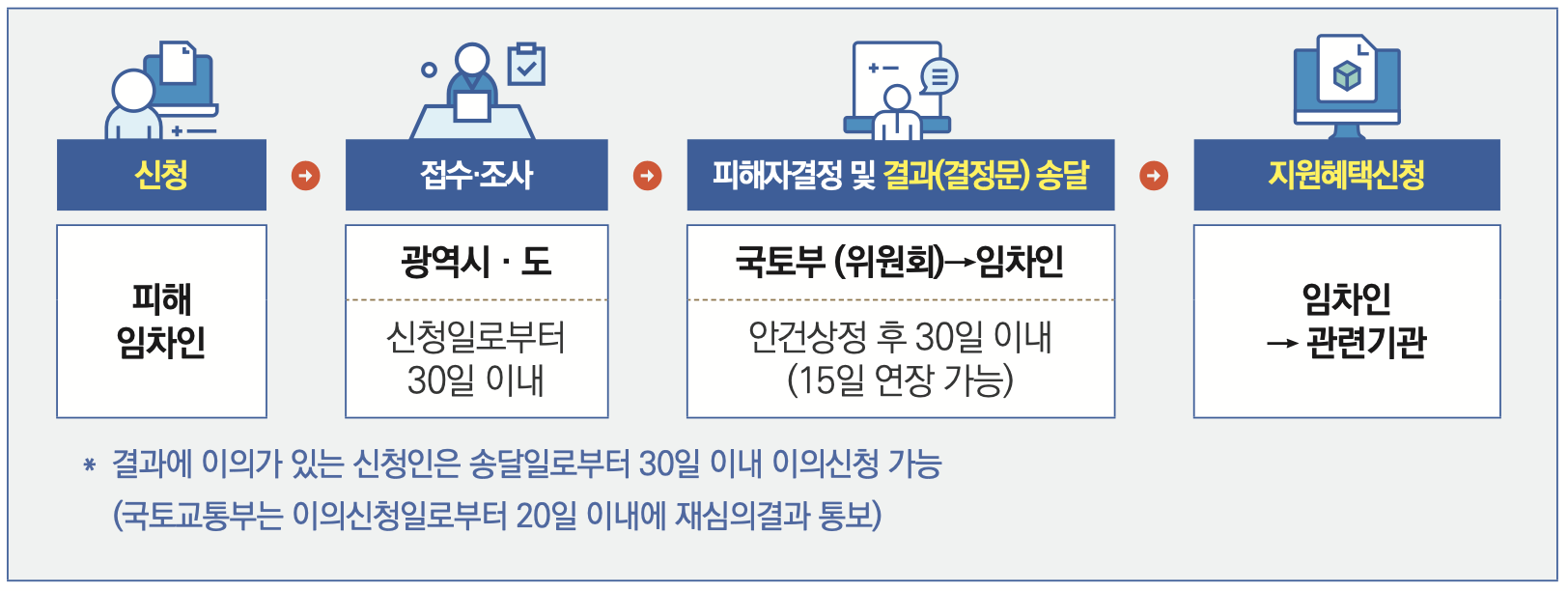 - (신청대상) 전세사기 피해로 인해 특별법 상 피해지원 희망 임차인 - (신청장소) 임차인 주민등록상 거주(피해주택) 소재지 관할 시·도*