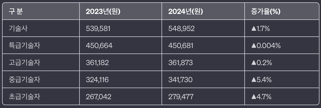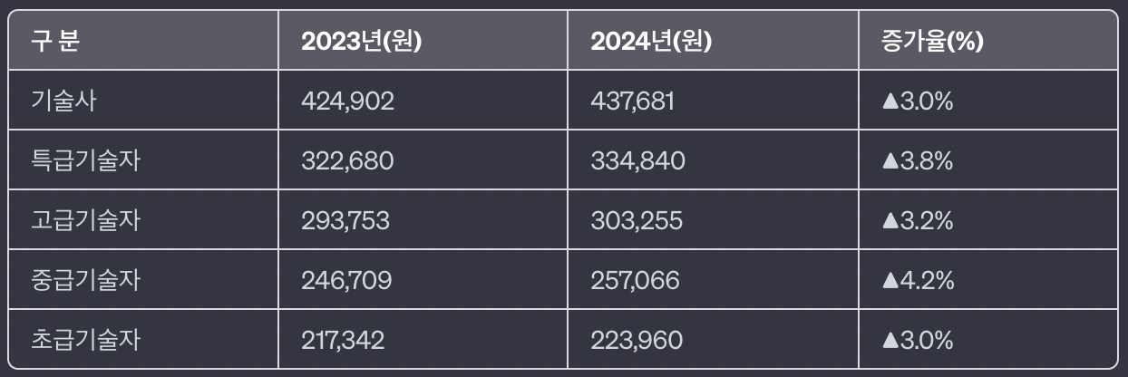 2024년 엔지니어링 노임단가