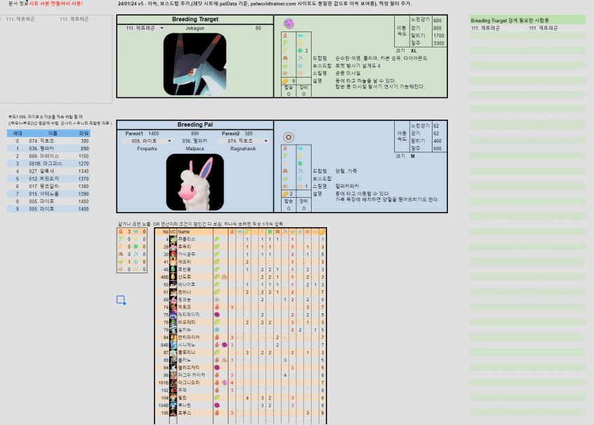 레딧에 최근날짜로 또 스프레드시트 업뎃되서 그거 적용하고, 팰 조합 로직도 양키성님꺼 그대로 가져다 쓰게 수정함.