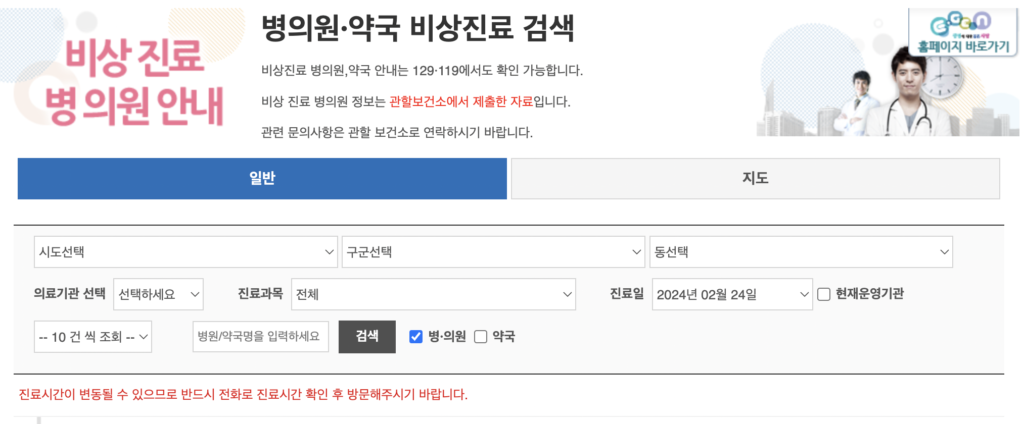 비상진료 병의원,약국 안내는 129·119에서도 확인 가능합니다.
