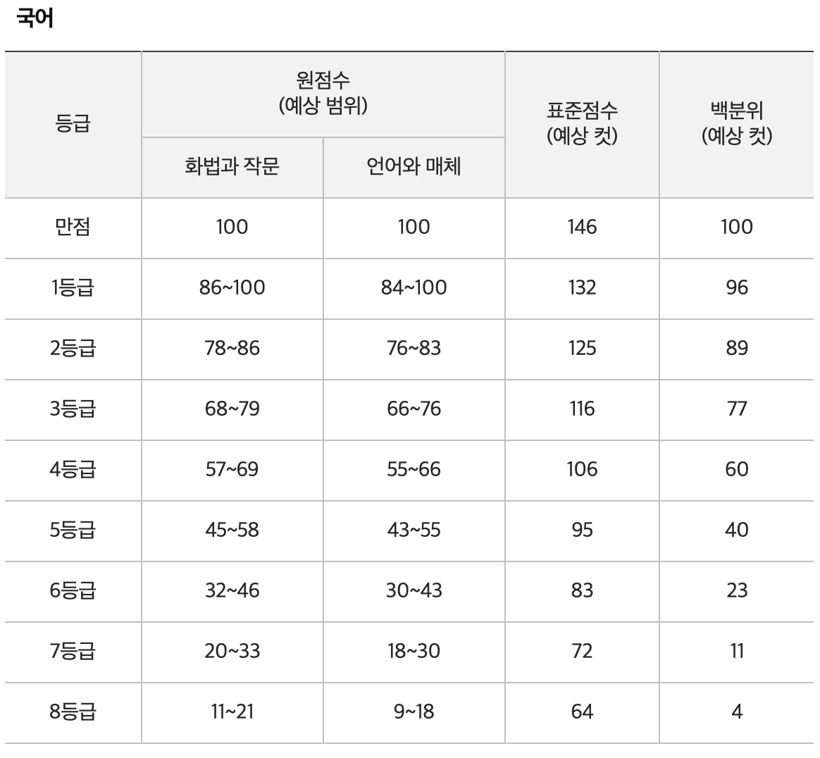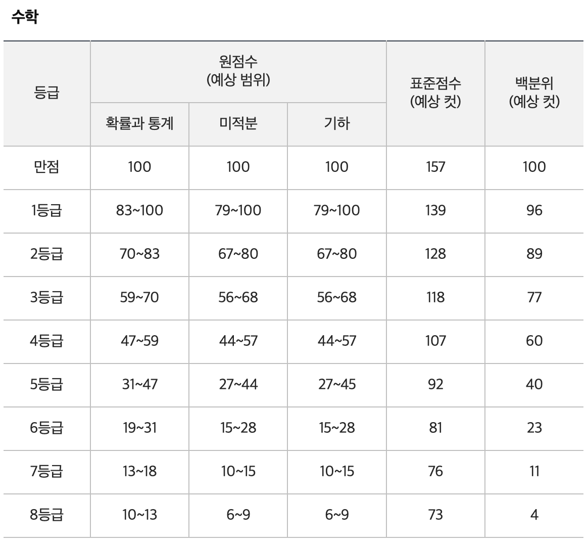 2024년 4월 모의고사 등급컷